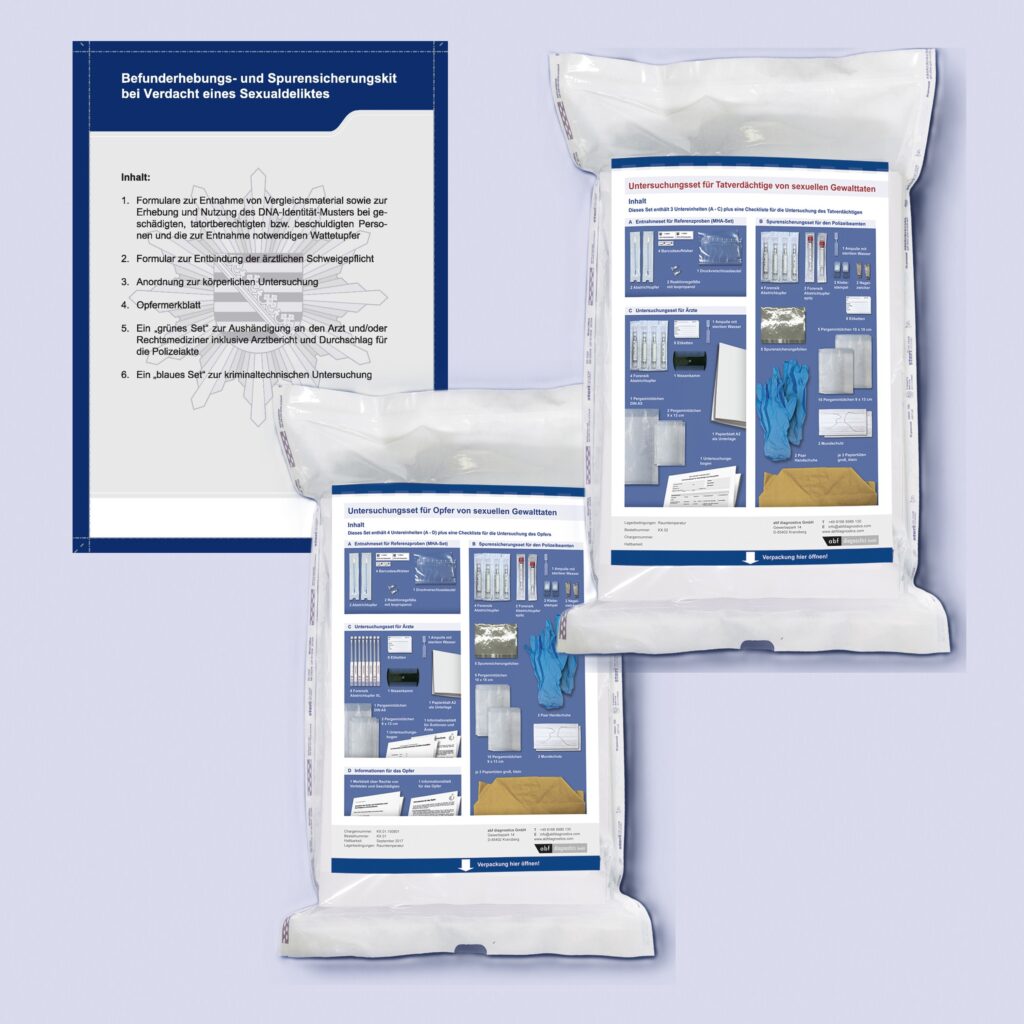 The medical and diagnostic procedures following a reported rape are largely standardized throughout Germany. The responsible criminal investigation department takes the woman to a hospital or doctor with whom a contractual agreement exists for these examinations. It also commissions and finances the necessary examinations and evidence collection. It manages the process, thereby facilitating the procedure for both the women affected and the hospitals. Evidence collection kits are an important tool in this context.