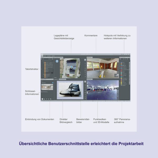 - Bearbeitung und Darstellung komplexer Tatortinformationen in einem übersichtlichen, visuellen Format