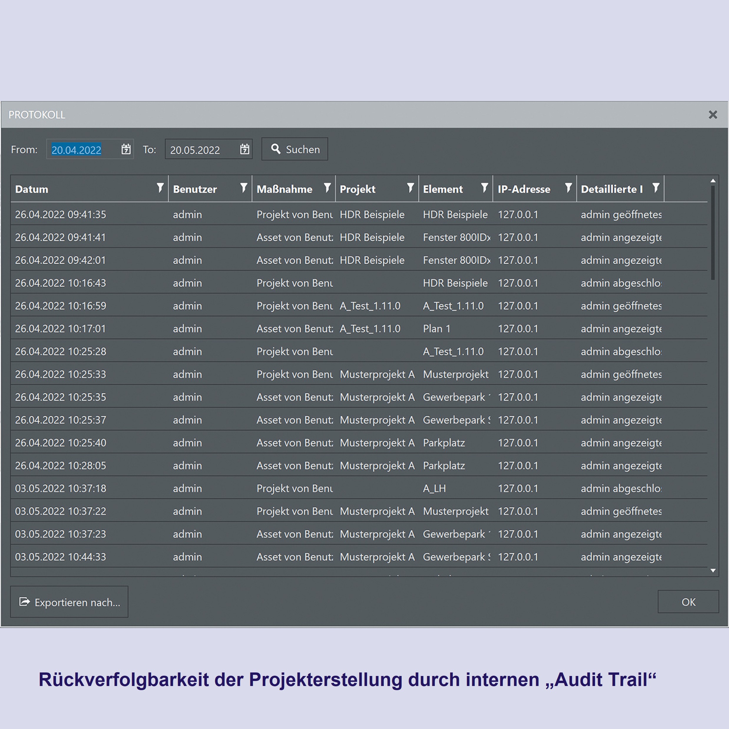 - Rückverfolgbarkeit durch integrierte Auditfunktion