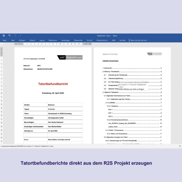 - Erstellung von Tatortbefundberichten direkt aus Ihrem Mosaic Projekt