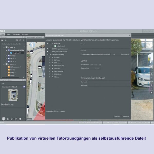 - Export ausgewählter Tatortinformationen oder eines virtuellen Rundganges in einem „ausführbaren“ Format
