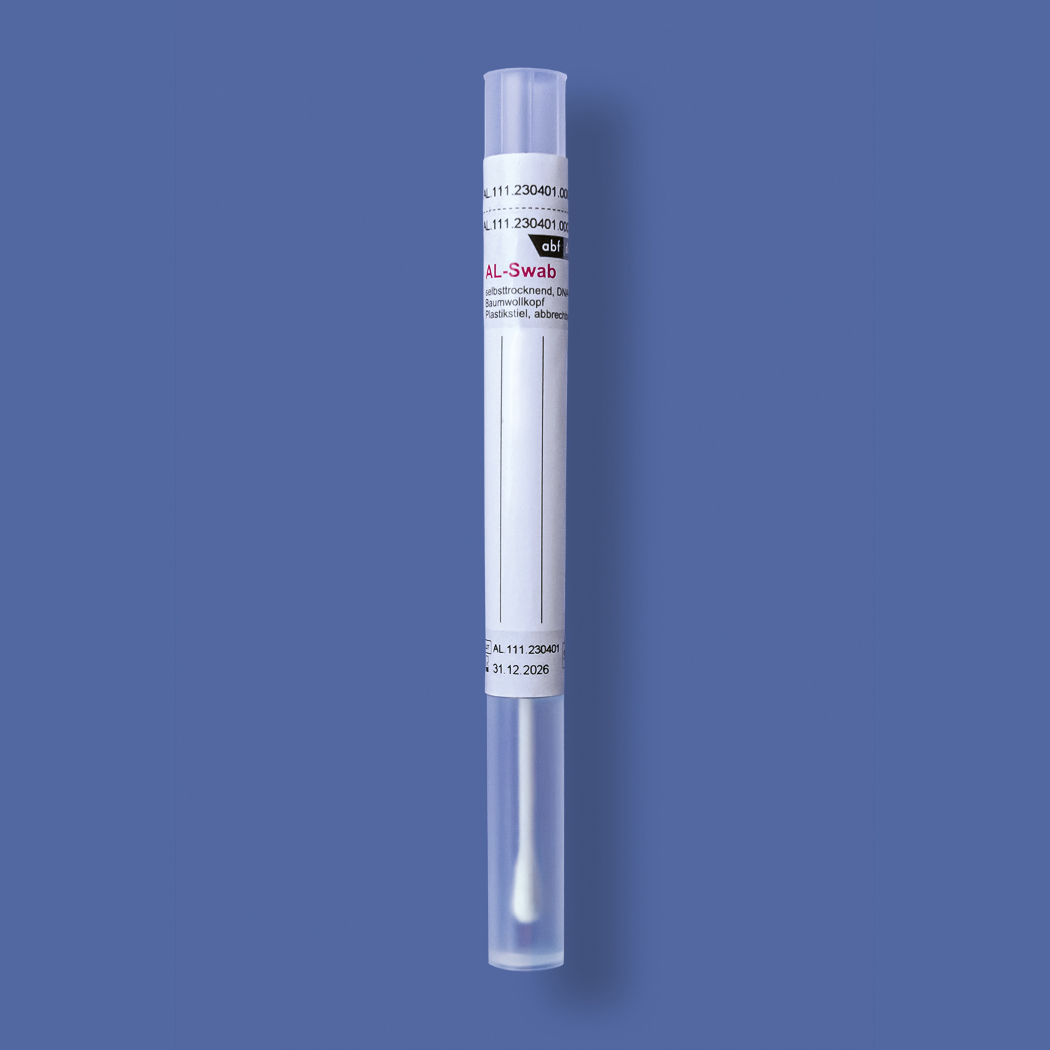 - Forensischer Abstrichtupfer im Transportröhrchen, lange Version