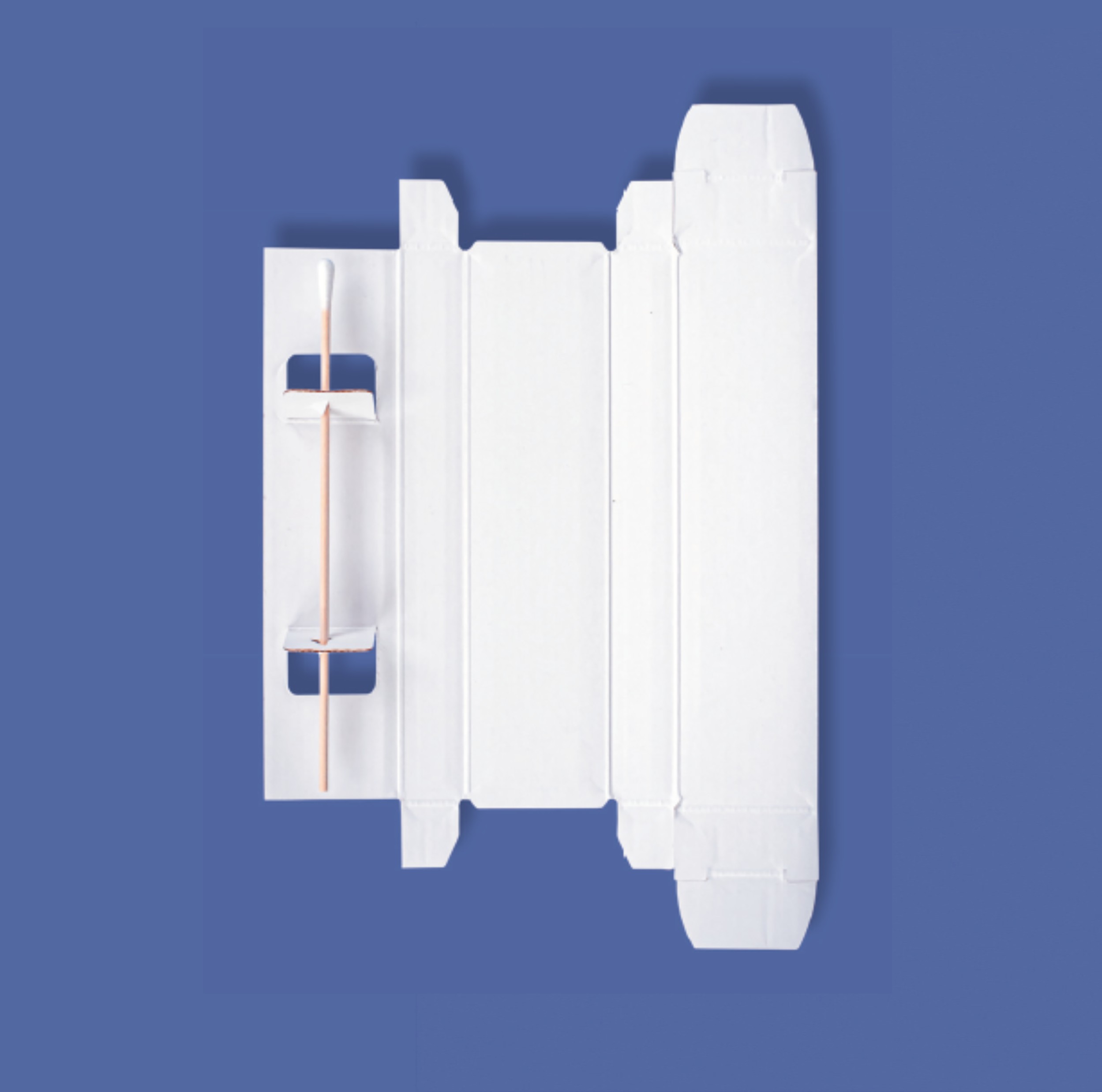 - Kartonbox für den sicheren Transport und die Aufbewahrung von Watteträgern (Swabs)